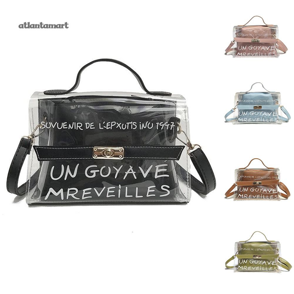 2Pcs Women Transparent Laser Word Print PVC Crossbody Shoulder Jelly Bag Handbag